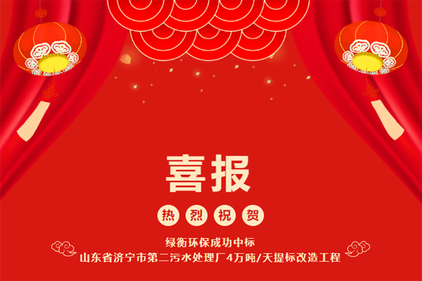 熱烈祝賀綠衡環保成功中標山東省濟寧市第二污水處理廠4萬噸/天...