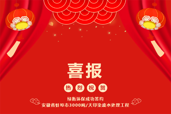 熱烈祝賀綠衡環保成功簽約安徽省蚌埠市3000噸/天印染廢水處...