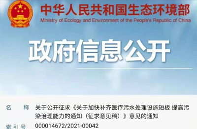 生態(tài)環(huán)境部:關于公開征求《關于加快補齊醫(yī)療污水處理設施短板 ...