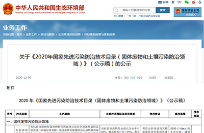 公示|2020年國家先進污染防治技術目錄(固廢和土壤污染防治...